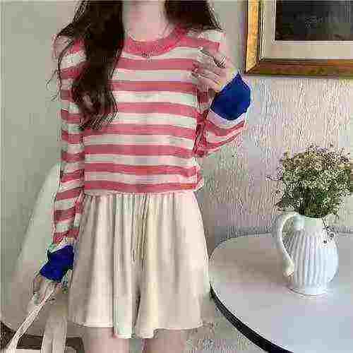 5.9元清小心机露肩减龄甜美宽松条纹针织衫,数量625件,单款多色,均码,独...