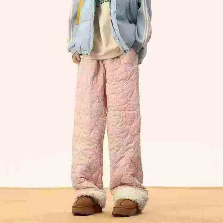 防寒休闲羊羔保暖裤男女冬季潮宽松葫芦纹防水直筒裤加绒滑雪棉裤,数量452...