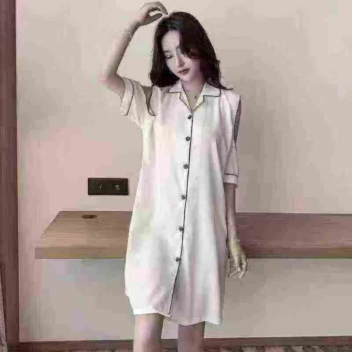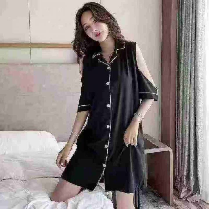 ① 网红冰丝性感露肩韩版宽松家居睡裙!独立包装,整款五色,码数M-2XL,数...