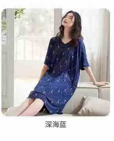① 网红冰丝性感露肩韩版宽松家居睡裙!独立包装,整款五色,有部分长袖款...