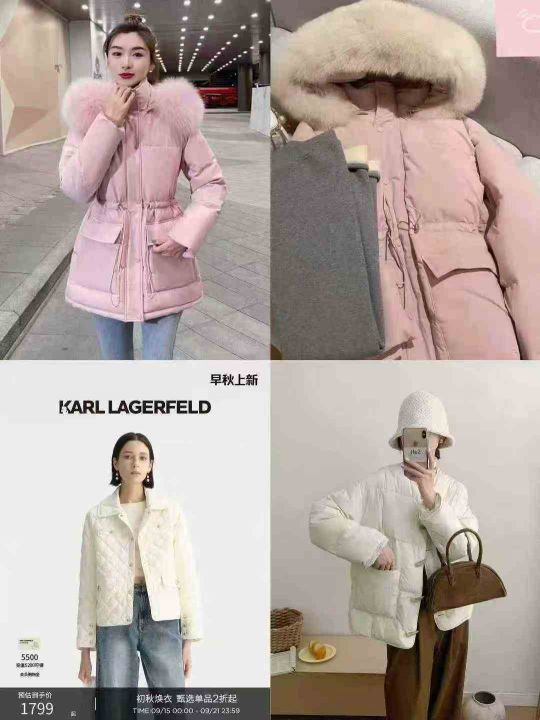 43.8元清女款羽绒服系列,都是达标90-80绒羽绒服,近两年新款,款式时尚做...