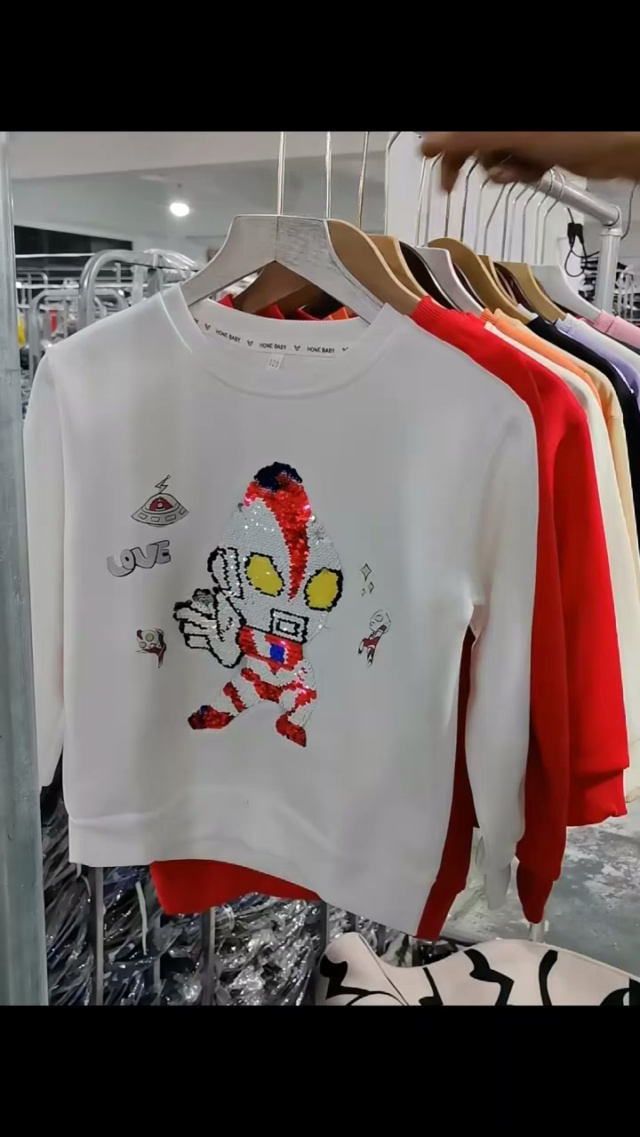 上新工厂生产过盛下架童装鱼鳞光版连帽卫衣 2000件左右 码数80-160. 黑白...