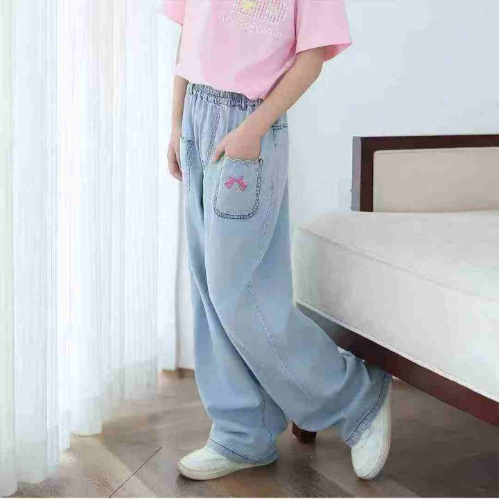 5.8清405件MQD童装女中大童牛仔裤夏季新款儿童休闲甜美百搭宽松阔腿裤。大...