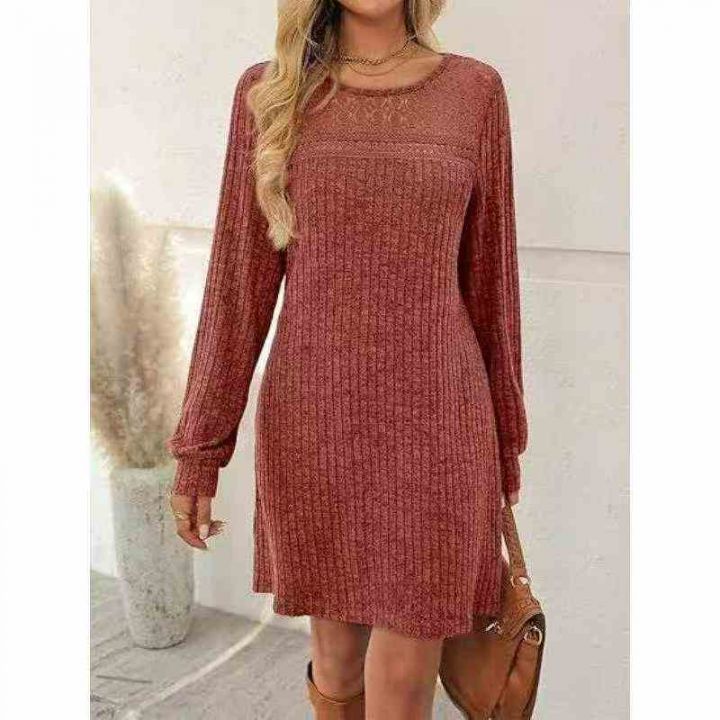 秋冬新款品牌外贸原单欧美风宽松设计款坑条磨毛长袖休闲连衣裙,独立真空包...