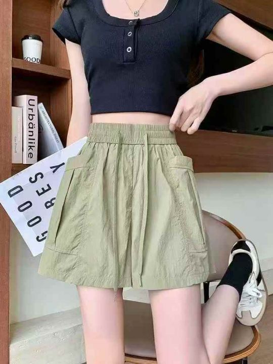 夏季大码女装高腰百搭阔腿裤复古工装口袋短裤数量:143件码数:1-4码全...