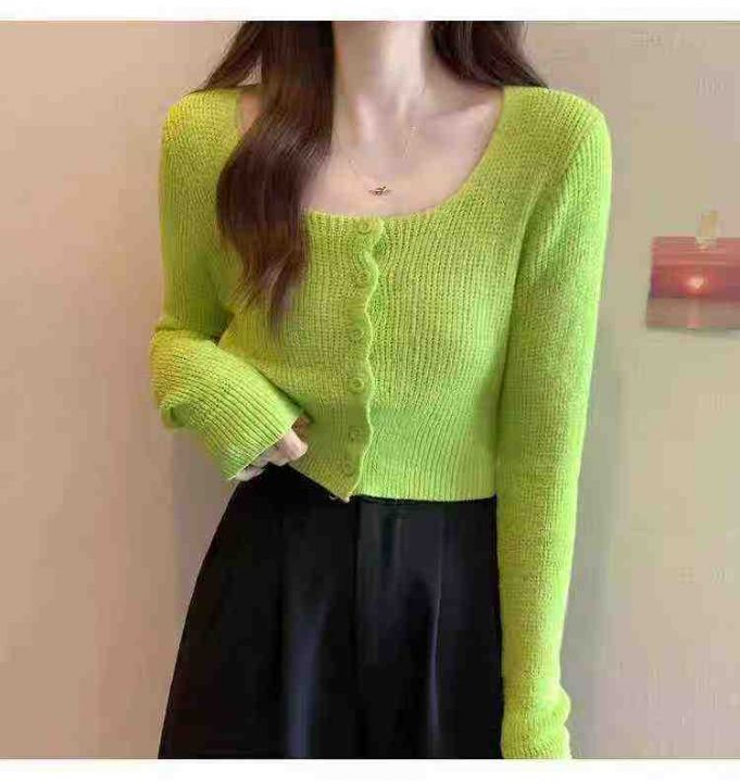 秋季新品韩系辣妹短款弹力修身显瘦针织长袖开衫,独立包装,均码面料柔软舒...