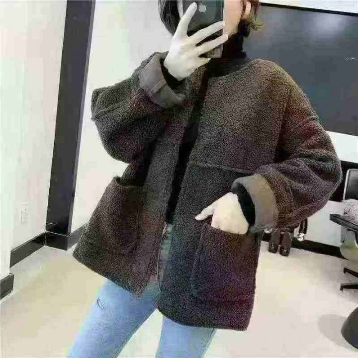 秋冬两面穿羊剪绒大衣女欧洲站皮毛一体宽松羊羔毛短外套,可两面穿,整款3...