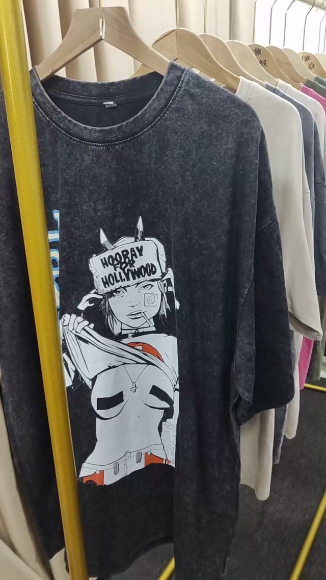 夏季潮流美式复古做旧水洗100%纯棉短袖t恤爆款印花宽松上衣150件,码数S-2X...