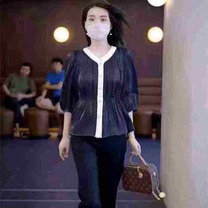 上新全清:8.8一件气质V领设计感遮肉宽松百搭长袖上衣,[爱心]75件左右,码...