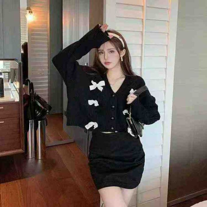秋冬新款短款宽松麻花小众设计感蝴蝶结慵懒风毛衣开衫外套,独立包装均码面...