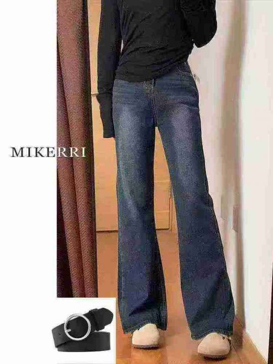 2025年秋季新款女士显瘦复古深海蓝高腰显瘦设计感喇叭牛仔裤1080件,码数XS...