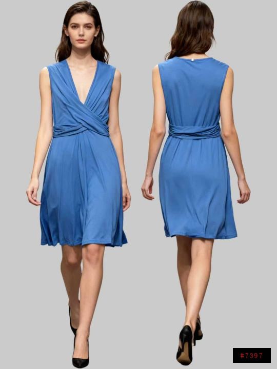 欧美跨境新款V领无袖休闲收折女士连衣裙 ,数量 220 条,码数 S-2XL。 高弹...