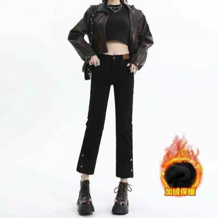 9.8分货➕1烟管牛仔裤女秋冬季秋装高腰拼接翻边复古怀旧九分裤,数量200件...