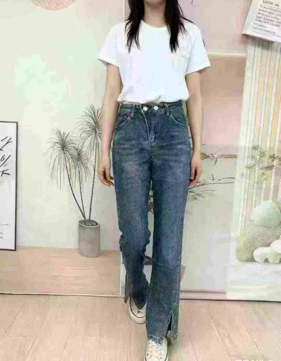 全清11.8开叉牛仔裤女高腰2025春秋新款修身显瘦高弹力百搭垂感拖地裤潮3个...