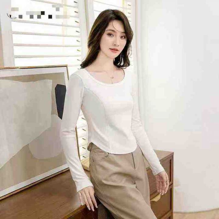 天猫精选360件女装上衣打底衫,春秋洋气修身纯欲辣妹性感U领鱼骨德绒长袖上...