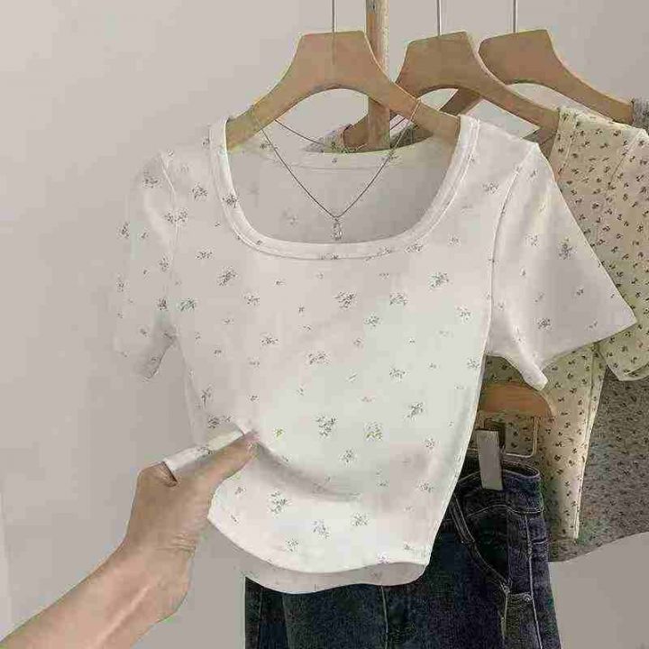 全清5.9韩系碎花正肩圆领短袖t恤女早春季修身内搭叠温柔风上衣 数量:856件...