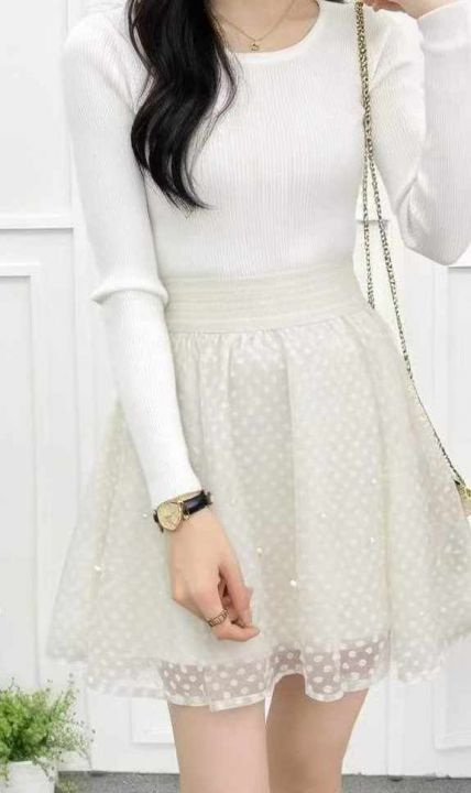 夏季新款女装防走光高腰百搭A字网纱蕾丝半身蓬蓬裙,独立包装,白色黑色为...