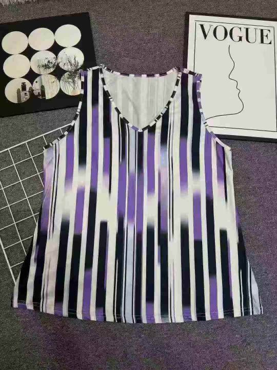 复古条纹背心吊带宽松显瘦V领宽松通勤夏季穿着舒适女士印花仙气,独立拉链...