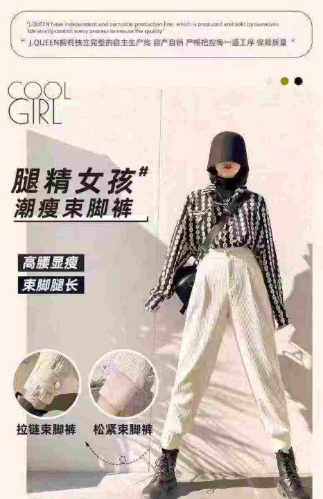 1015条灯芯绒哈伦裤女加绒加厚宽松高腰束脚裤米色休闲萝卜裤子,单款单色,...