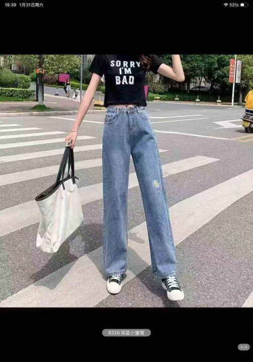 男女同款小雏菊刺绣牛仔裤子直筒阔腿萝卜宽松休闲高腰显瘦百搭牛仔裤1400件...