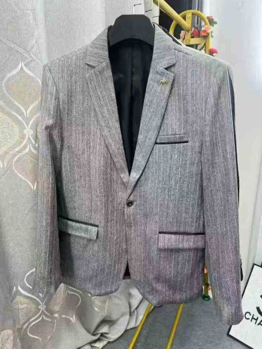 全清19.8 春秋高级感男装大码西装外套,一粒扣条纹商务修身外套,整款三色...