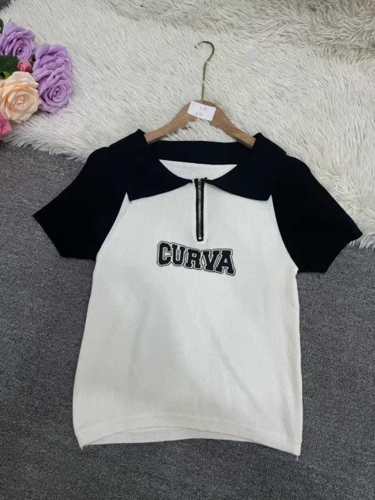 28件,美式复古polo领正肩短袖针织T恤女,夏季设计感小众修身短款上衣,独...