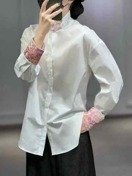 新中式立领衬衫70件11.8,拼接袖口,弧形下摆,珍珠袖扣,品质,码数S-XL,...