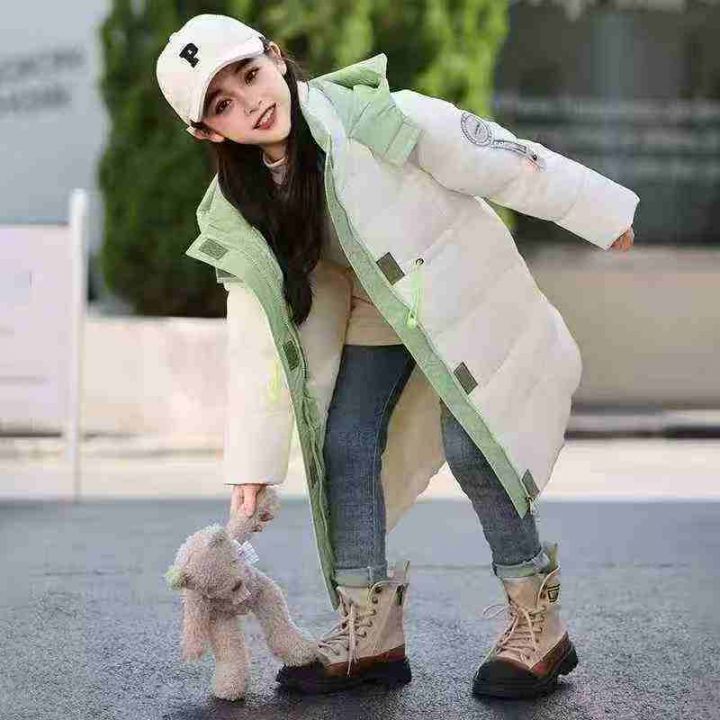 ②儿童羽绒服冬季新款时尚纯色简约中长款百搭保暖羽绒外套,独立包装带吊牌...