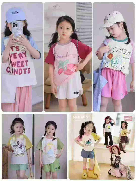 5.9清天猫仓回收1050件卡通可爱插肩袖儿童纯棉短袖T恤,码数90-150。纯棉面...