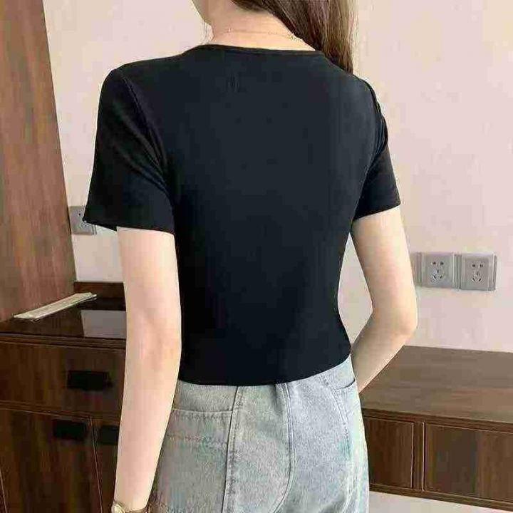 设计感靓妹冰丝方领短款显瘦正肩短袖t恤200件,码数1-6,独立包装全清5...