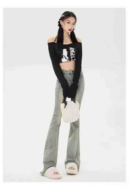 秋冬新款高品质网红爆款高弹力复古喇叭牛仔裤,独立包装带吊牌,码数S-XL码...