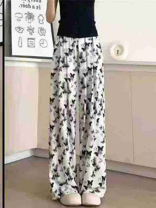 ☕️韩版阔腿裤女夏季高腰宽松垂感薄款冰丝水墨蝴蝶印花休闲裤 969条全清8....