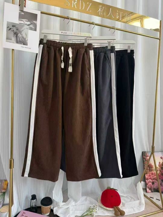10.8清461件男女同款灯芯绒加绒韩版拉条秋冬装直筒阔腿运动裤子!咖啡~灰...