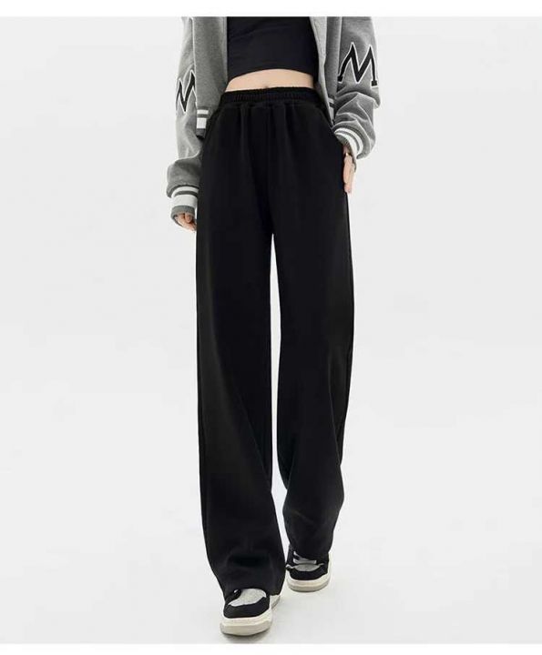 秋冬黑色运动加绒直筒休闲裤女,单款单色,面料厚实有质感,有独立包装,数...