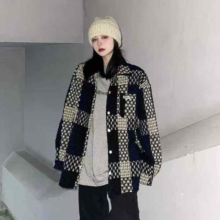 复古撞色编织格子外套271件19.8,宽松版情侣款,品质,翻领设计,字母毛巾...