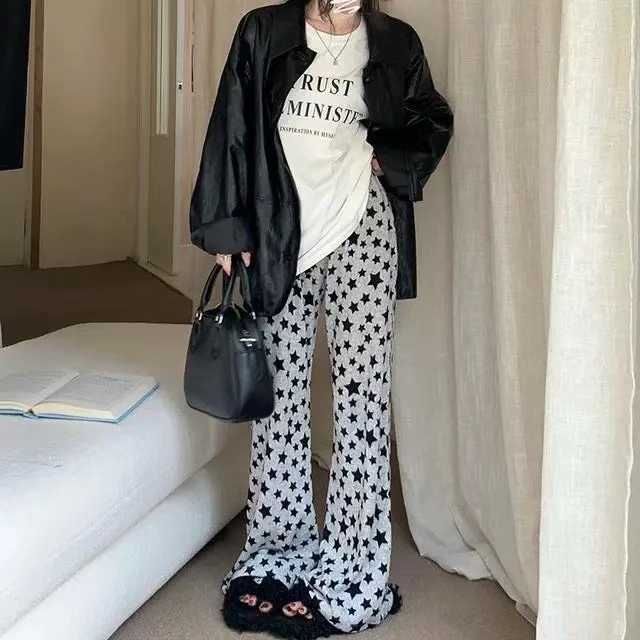 潮流女休闲裤豹纹星星条纹直筒裤,图片款,品质好,数量150件左右,码数s-x...