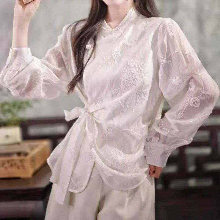 新中式两件套衬衫129件,清14.8 系带收腰,提花面料,国风盘扣,珍珠纽扣,...