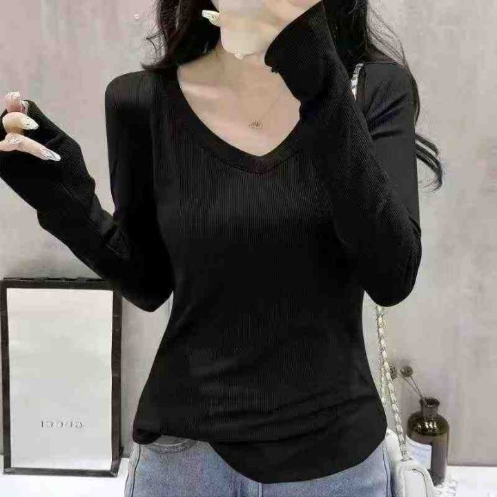 [月亮]:5.9清800件[月亮]:简约内搭外穿高弹V领长袖T恤[月亮]:单款3色(...