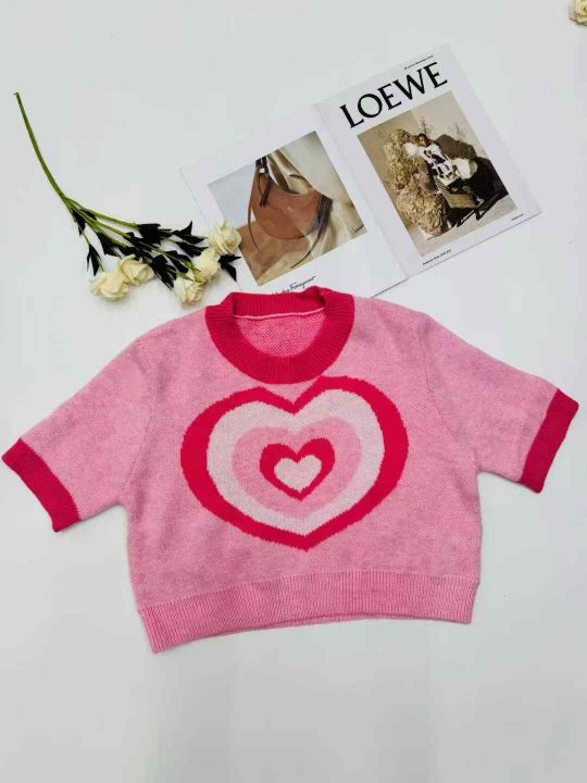 多巴胺爱心提花宽松短款针织短袖T恤.单款单色S-xL独立包装58件全清6.8...
