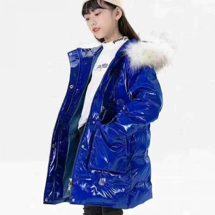 ①巴拉女童羽绒服冬季新款时尚潮流印花皮面炫酷保暖加厚外套,独立包装带吊...