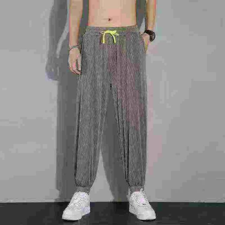 全清6.5元,6538条\'裤子夏季男休闲薄款韩版ins潮牌冰丝条纹运动大码弹力宽...