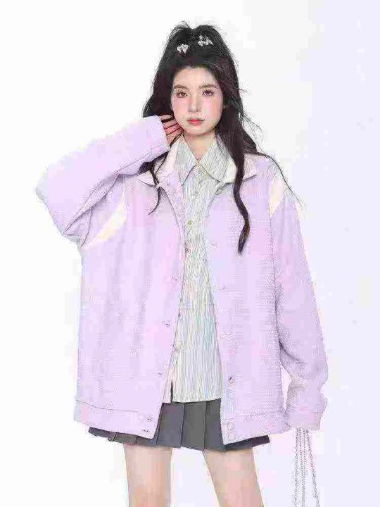 [月亮]:8.8清158件(不分货)[月亮]:香芋紫棒球服华夫格撞色外套[月亮]:...