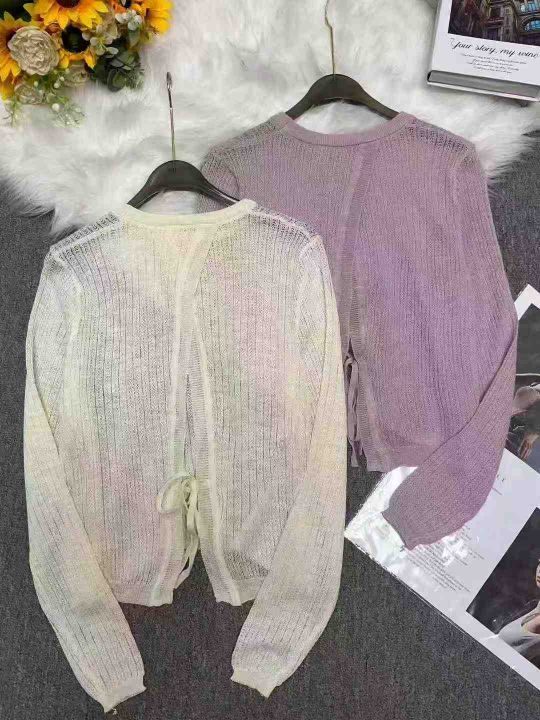 早秋季新品设计款后背开叉绑带镂空时尚长袖针织衫,独立包装,均码面料柔软...
