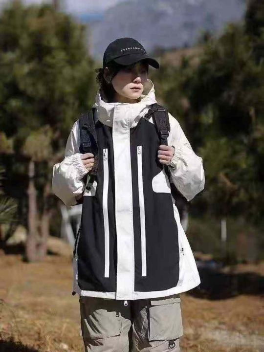 山系机能男女同款拼接撞色户外双层连帽·带里衬防风冲锋衣·晕染双拉链M-2X...
