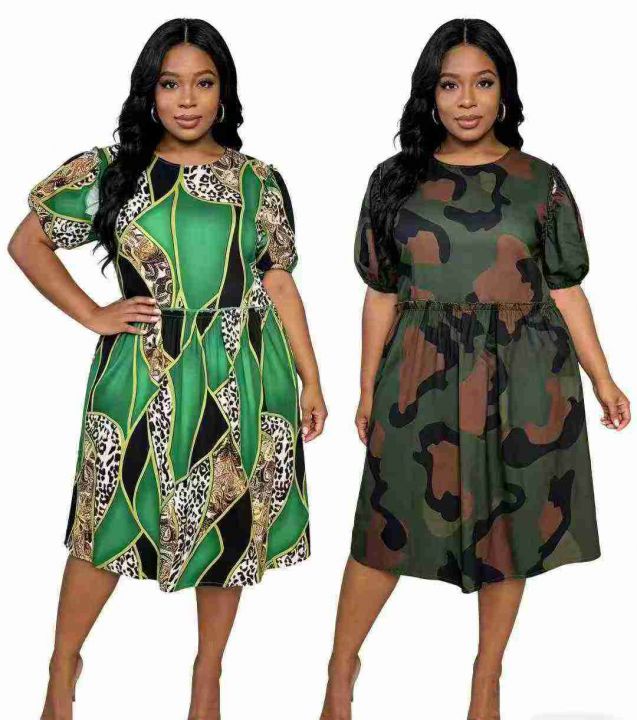 6.8清:欧美灯笼短袖印花连衣裙 ,图片款2个色,数量115条左右,码数S-2XL...
