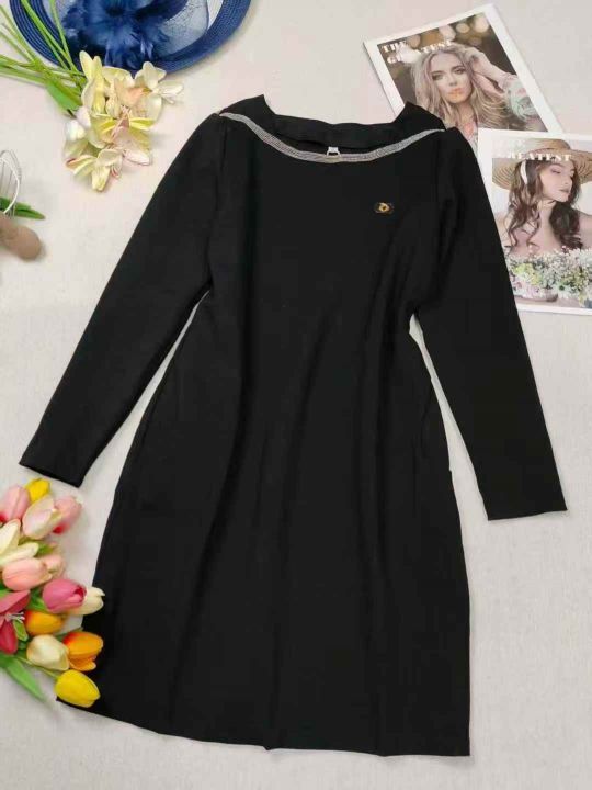 1208条2025年新款女夏季墨绿色复古连衣裙收腰显瘦气质赫本风一字肩裙子 独...