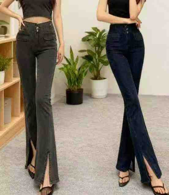 秋季新品高弹力洗水棉网红爆款牛仔开叉微喇叭牛仔裤,独立包装带吊牌,码数...