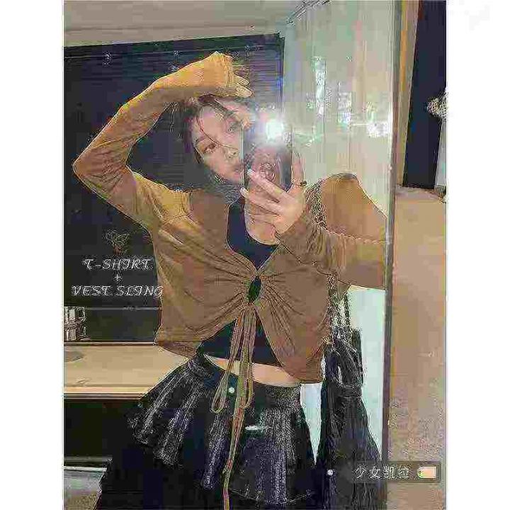 [福]法式设计款纯色高腰V领抽绳短款长袖T恤213件,码数2~5码,单款单色,独...