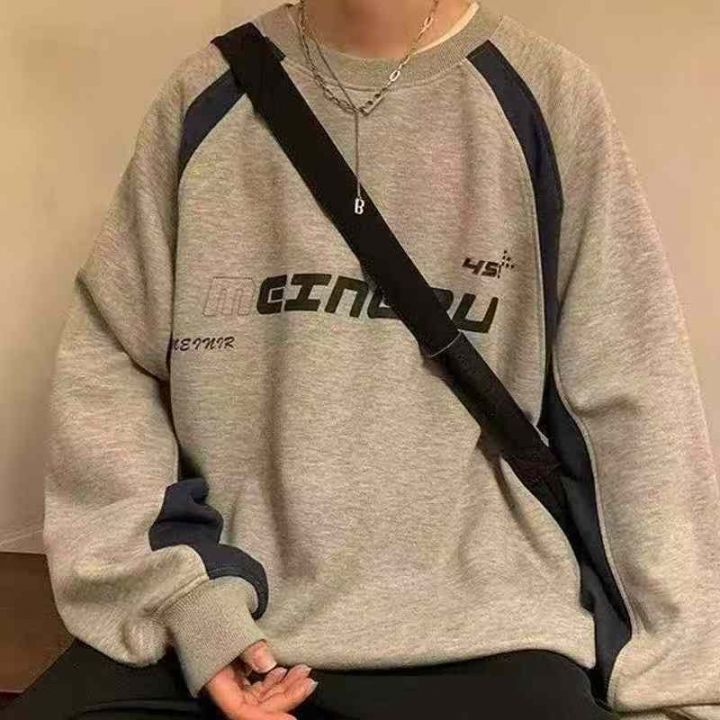 169件,卫衣男中长款外穿男士美式宽松ins上衣长袖秋季新款拼色针织卫衣,独...