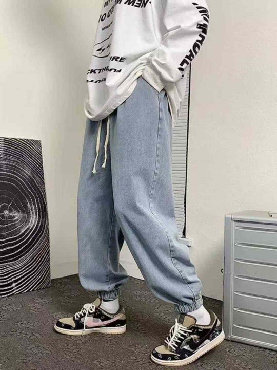 秋季新品男女同款洗水棉松紧腰束脚牛仔裤,独立包装,码数S--2xL码,295件...